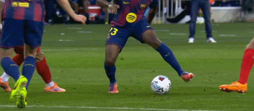 第5分鐘,亞馬爾邊路人球分過后突入禁區(qū),隨后射門偏出